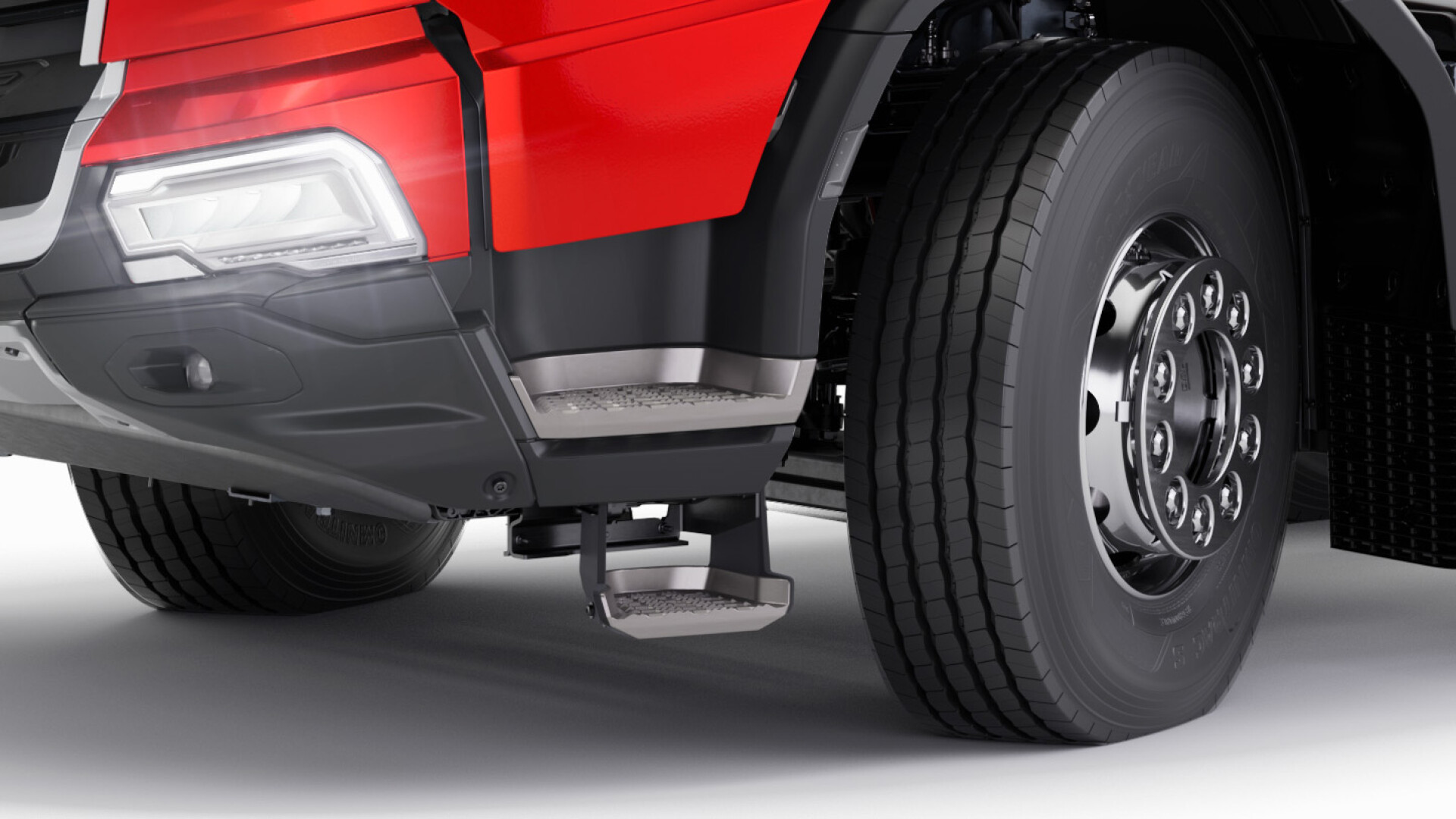 Posebej zasnovani za terenske in gradbene aplikacije, modeli XBC, XDC in XFC vključujejo trideln odbijač iz trdnega jekla, zaščito hladilnika, integrirane meglenke in večjo oddaljenost od tal. Robustna sprednja zasnova še dodatno poudarja vzdržljivost teh vozil. Ta praktičen pristop k delu v zahtevnih pogojih se nadaljuje tudi v notranjosti, kjer so površine iz zelo trpežnega vinila ter priprava za trdožične stikala za nadgradnje, kar ohranja premium občutek kabine tudi po vgradnji nadgradenj.